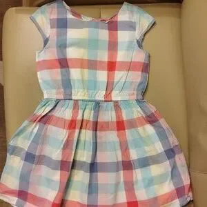 Dress in very good condition, no issues. Size M. Madras print. Cotton. Lined skirt.