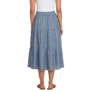 Matty M's Women's Linen Blend Tiered Midi Skirt is designed with side slit pockets and tiered frame for a modern flair. Its linen blend material is lightweight, breathable, and comfortable for all day wear. Perfect for the summer months, this skirt offers timeless style and easy versatility.