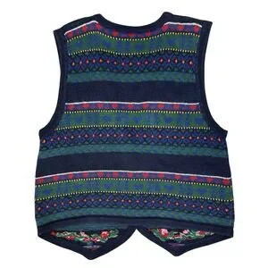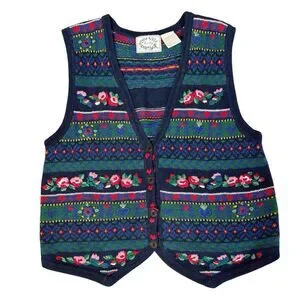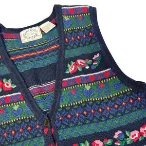 Vintage Erika Fair Isle Cottage Dark Floral Sweater Vest Size M Holiday Vintage