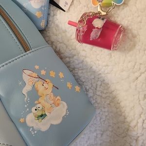 LOUNGEFLY CARE BEAR X HELLO KITTY BACKPACK WALLET AND KEYCHAIN BUNDLE NWT