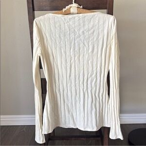 Reformation Delancey Long Sleeve Ribbed Ivory Top Notched Square Neckline Size L