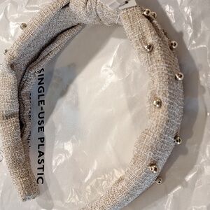 New J. Crew Gold Beaded Knot Headband in Natural Nuetral Hair