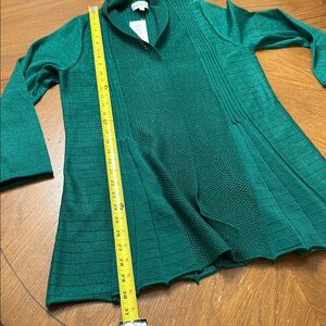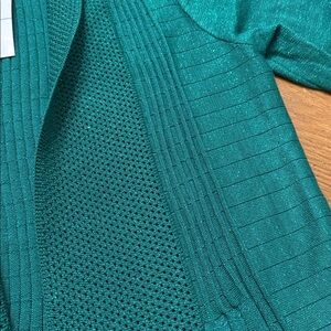 NWT Birch NY Emerald Green Metallic Long Sleeve Crochet Ribbed Cardigan Size XL