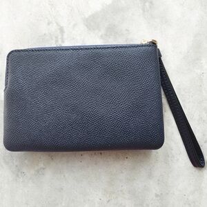 Chic leather wristlet by Coach. Features a textured finish and convenient wrist strap.