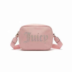 Stylish Juicy Couture crossbody in blush. Elegant Juicy crossbody bag with sparkling logo. Soft blush pink hue. Perfect for adding glamour.