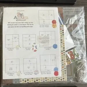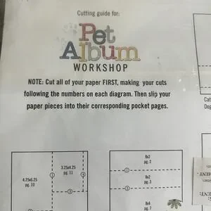 * Extra sheets with cutting guide for Pet Album Workshop are provided, making it easy to create pocket pages and embellish with included colorful paper and tabs.
