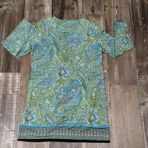 Michael Kors Green and Blue Paisley Long Sleeve Dress