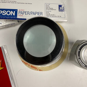 Photography accessoires lot: Kodak Gray Cards, Epson photo paper, 2 magnifiers