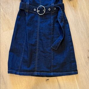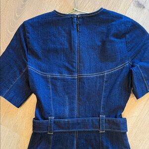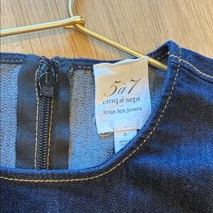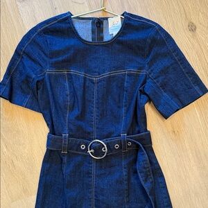 Stylish mini dress with a fitted design. Features a matching belt for added flair. Perfect for casual outings. Comfortable stretch denim. Perfectly fitted as expected from Cinq a sept. Size 0