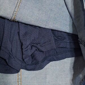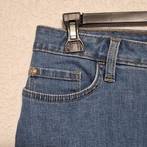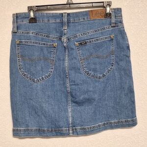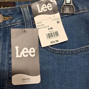 Classic and versatile Lee denim skort in a flattering straight fit. Features the look of a mini jean skirt with the comfort and coverage of built-in shorts. Easy to dress up or down for everyday wear. Midrise skort, size 6M.