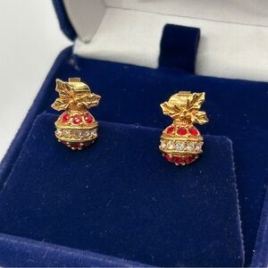 Vintage charming Christmas Ball earrings, clip-ons with sparkly red and clear rhinestone crystals. Stamped Avon. Lovely to wear for holiday celebrations. These are from the 1990’s and have been in storage ever since. Worn only a few times. Nice ones to add to your jewelry collection.