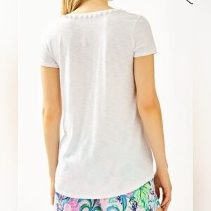 ❤️ LILLY PULITZER ETTA POM POM TOP, RESORT WHITE, PIMA COTTON, MEDIUM Measurements are approximate and taken laying flat: 17.5" pit to pit and 26.5" long (from height of top of shoulder to hem). Excellent condition!