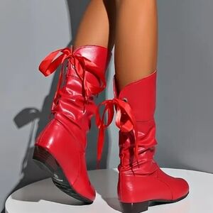 Step out in style with these vibrant red ankle boots. Featuring a chic ribbon detail, these boots are perfect for adding a pop of color to any outfit.