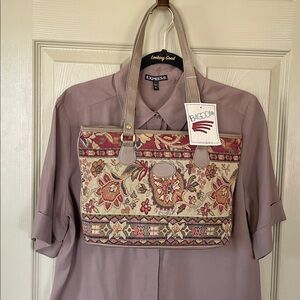 Shown with a silk skirt and necklace that are for sale in my closet. Also shown with a new brocade purse that will soon be posted for sale.