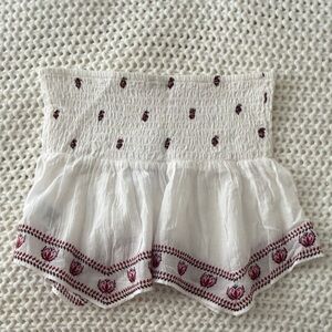 American Eagle Outfitters White Smocked Tube Top with Red Accents