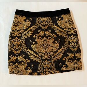Chic mini skirt with intricate black and gold pattern. Perfect for stylish outings. Size 6 (28 waist)