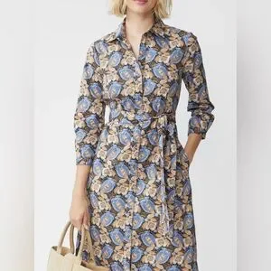 NWT! J. McLaughlin Louisa Dress in Camel/ Blue Pomegranate Grove Midi Dress XS