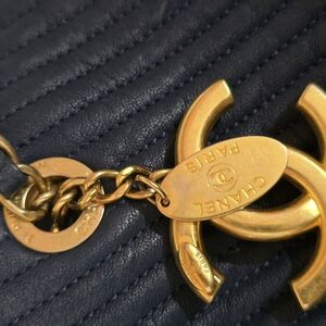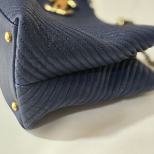 Elevate your style with this elegant Chanel navy quilted shoulder bag. Featuring a luxurious design and iconic branding, it's perfect for any occasion.