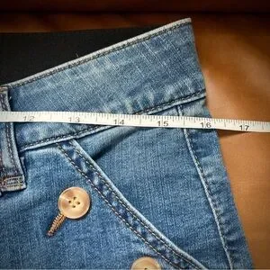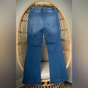 Features unique decorative button detailing at the front pockets for a subtle boho-chic touch and a vintage-inspired silhouette. High rise waist with a beautiful flare leg that elongates and flatters.
