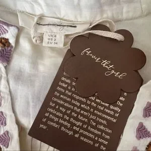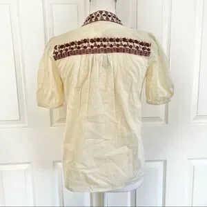Anthropologie Forever That Girl Cotton Embroidered Beaded Peasant Top Ecru US 2