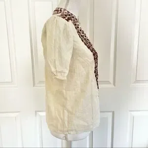 Anthropologie Forever That Girl Embroidered Beaded Peasant Top Ecru US 2