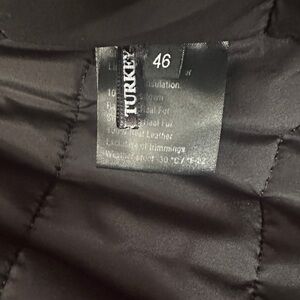 Elevate your wardrobe with this elegant black leather jacket, featuring a genuine fur trim.