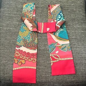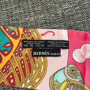 Hermes Vibrant silk scarf featuring a colorful fish design. Perfect for adding a pop of color to any outfit.