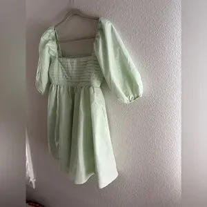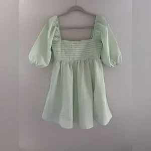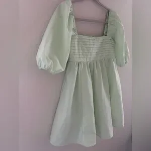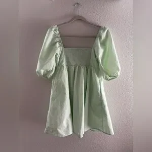 Soft, feminine, and effortlessly flattering, this Francesca’s babydoll dress features a romantic square neckline and airy puff sleeves with elastic cuffs. The front has a pleated bodice that flows into an empire waist and swingy skirt for an easy, flattering silhouette. The upper back of the dress features a stretchy smocked panel, allowing added flexibility through the chest and waist while the front remains smooth and structured. Finished in a beautiful pastel mint green, this dress is perfect for spring and summer events, brunch, showers, vacations, or casual outings. Brand new with tags.