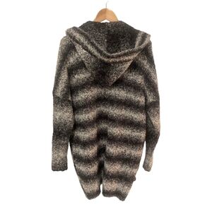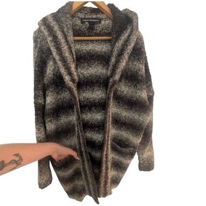 This French Connection cardigan features a chic black and gray color palette, perfect for adding a touch of sophistication to your wardrobe. Crafted from a warm, cozy blend of Wool and Alpaca, it offers an open front design ideal for layering. The cardigan's boucle textured pattern enhances its stylish appeal, making it a versatile addition to any outfit.