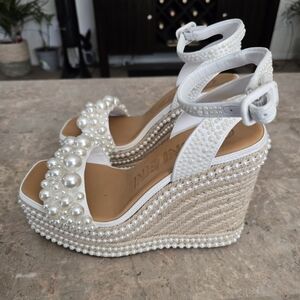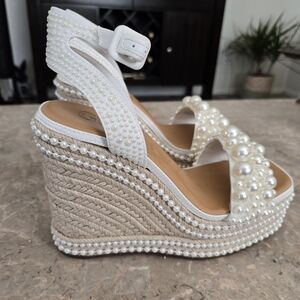 Gianni BiniSavanna Pearl Ornamented Platform Wedge Sandals. Size 6.5