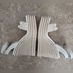 Faux pearl embellishments on straps and wedge