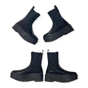 Staud Palamino Black Patent Leather Platform Chelsea Boots, Size 40 EU, New