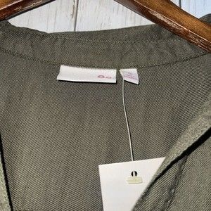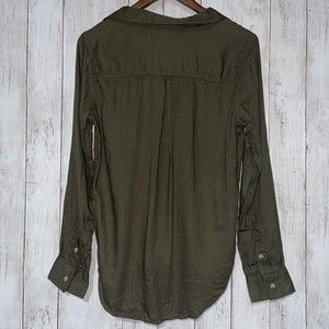 SO Lace Up Utility Shirt Olive Green Long Sleeve Button Pocket Women's Size M