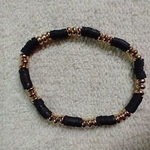 Black goldtone beaded stretch bracelet