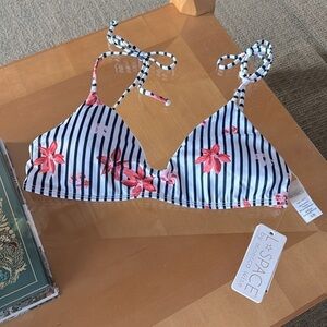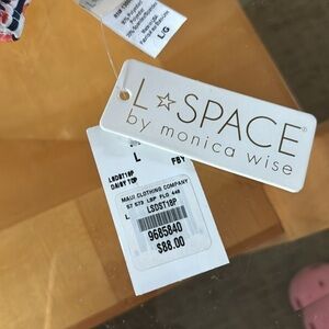 New L*Space striped White Blue Floral Bay Pullover Bikini Top Swimwear Sz L NWT