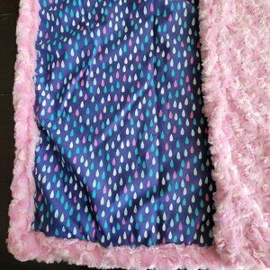 Hand Sewn Girls/Baby Blanket Blue Raindrops Pink Fuzzy 44" x 36' Bedroom Snuggie