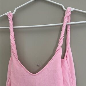 Chic soft pink knit dress. Comfortable and versatile. Ideal for casual outings.