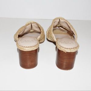 Crown & Ivy Elyza Straw Raffia Double Band Heeled Sandals. Raffia Ring Circles. Slip-On. Open Toe. 2.5” Heel. Size 9.5M.