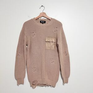 SER.O.YA Devin Oversized Tan Sweater Size XXS Distressed Cotton