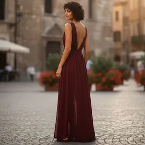 Elegant, romantic, and designed to make an entrance, this Windsor Burgundy Chiffon Maxi Dress is a stunning formal gown for unforgettable occasions. Crafted with a lightweight chiffon overlay, this floor-length dress features a plunging deep V-neckline in front and back, balanced by an empire waist that flatters the figure beautifully.