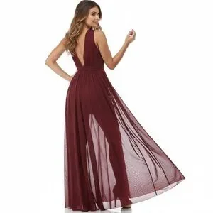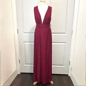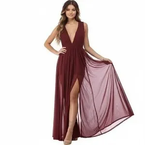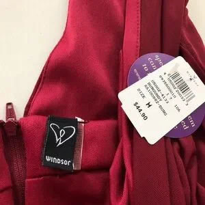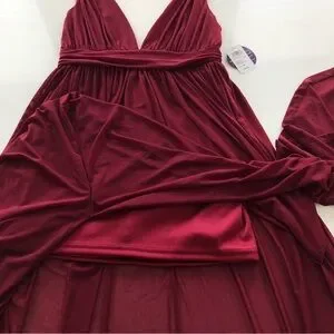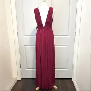 Windsor Burgundy Chiffon Maxi Dress Deep V Slit Formal Gown Size Medium NWT