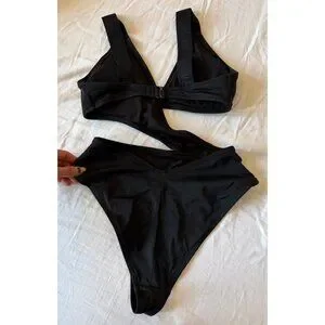 This Gymshark black one-piece swimsuit features stylish cut-out details for a modern and flattering look. Perfect for pool days, beach outings, or lounging in style.