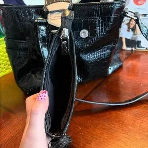 Liz Claiborne Shiny Black Crocodile Shoulder Bag