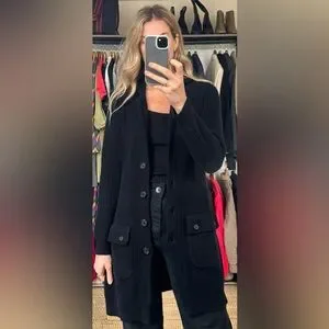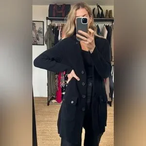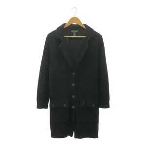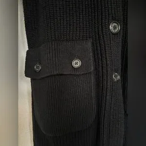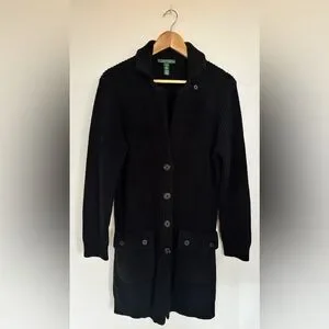 Ralph Lauren Black Knit Ribbed Button Down Shawl Collar Utility Cardigan Sweater