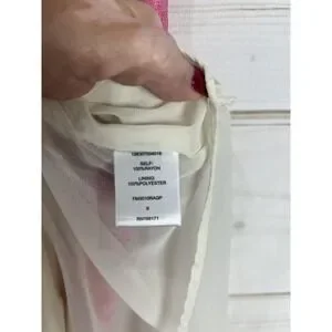 Material: Self 100% rayon; lining 100% polyester lightweight woven fabric with soft drape.