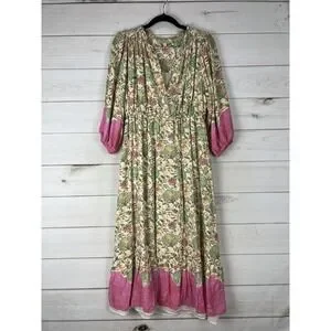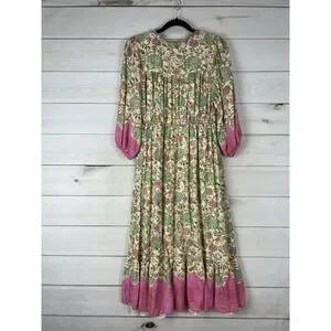 Farmers Market Dress Womens Small Multicolor Floral Boho Maxi 3/4 Sleeve Tiered