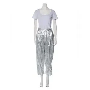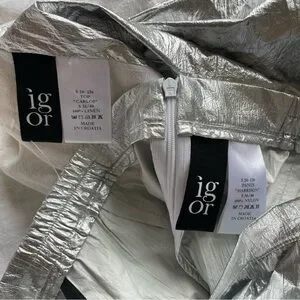 Igor Dobranic Two-Piece Linen Carlos Harrison Metallic Silver White Pant Set S