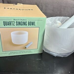 Elegant white crystal singing bowl with matching soft stick. Perfect for meditation and sound healing.new Singing Bowl 4.25" D, 2.65" H; Mallet 6" L;