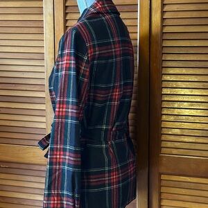 Perfect condition 1970s Pendleton wool overcoat. red, green, and black tartan plaid with two front pockets, a waist tie. Absolutely stunning tailoring! Lightweight enough to layer. NO moth holes or damage of any kind, it is like new condition.