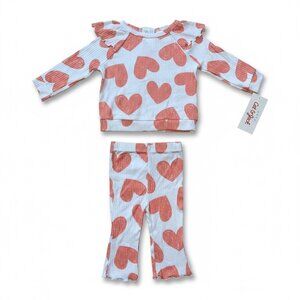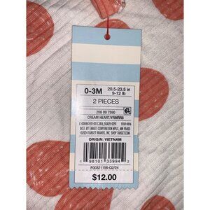 Cat & Jack Baby Girls 2-Piece Cream Heart Outfit Set Size 0-3M